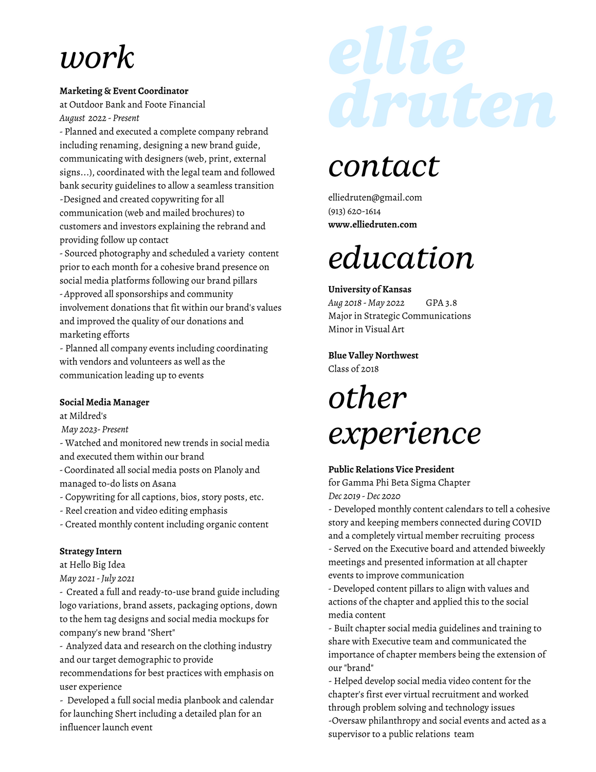 Let’s get real here. I’m a Gen Z, trend watch is pretty much in my DNA. I can assure you being up to date and fresh-faced is something your brand will have if you’re working with me. Along with the best graphic design and social media management you can get. Don’t believe me? Send me an email (elliedruten@gmail.com) and I’ll shoot you back with mockups or your next month’s Instagram feed.